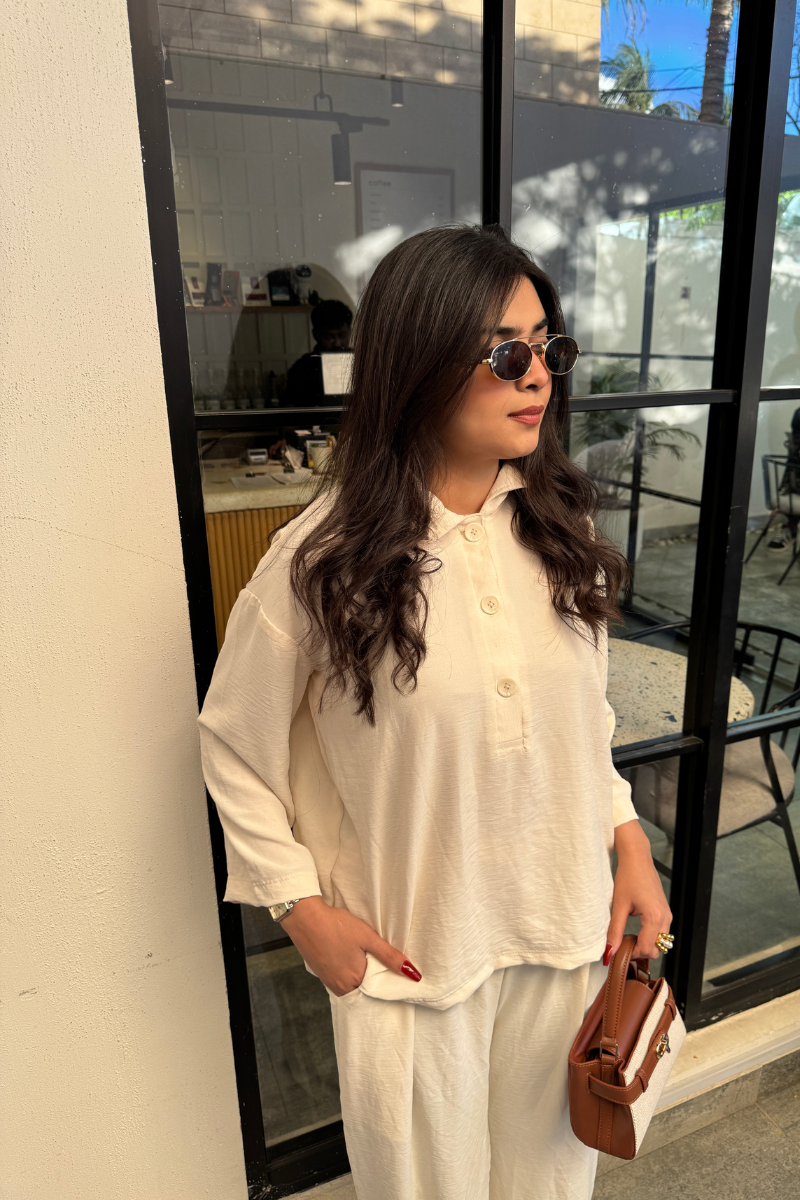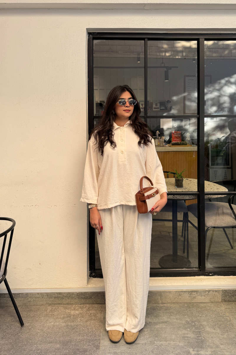 Color: Cream WhiteMaterial: Irish CYIncludes: Two-piece set (Shirt & Trouser)